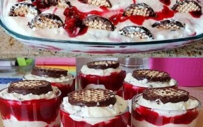 Fantastisch, Weihnachtliches Zauberkuss Dessert in 3 Minuten Zutaten 2 Becher süße Sahne 550 ml Rote Grütze, selbst gemachte 22 Schokoküsse…