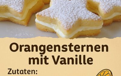 Schmecken bombastisch – Orangensterne mit feiner Vanille! Zutaten: 250 g Mehl 100 g Zucker 1 Päckchen Vanillezucker 1 Prise Salz…