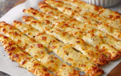 Schnelle Knoblauchstangen – weich innen, knusprig außen & voller Geschmack! Zutaten (für ca. 8 Stück): 1 Rolle Pizzateig (aus dem…