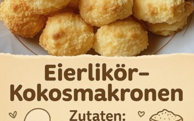 Außen knusprig, innen herrlich weich – Eierlikör-Kokosmakronen! Zutaten: 3 Eiweiß 200 g Zucker 1 Pck. Vanillezucker 250 g Kokosraspel 5…