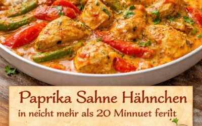 Paprika Sahne Hähnchen in nicht mehr als 20 Minuten fertig Zutaten: 450 – 500 g Hähnchenbrustfilet – 3-4 Filets 3…