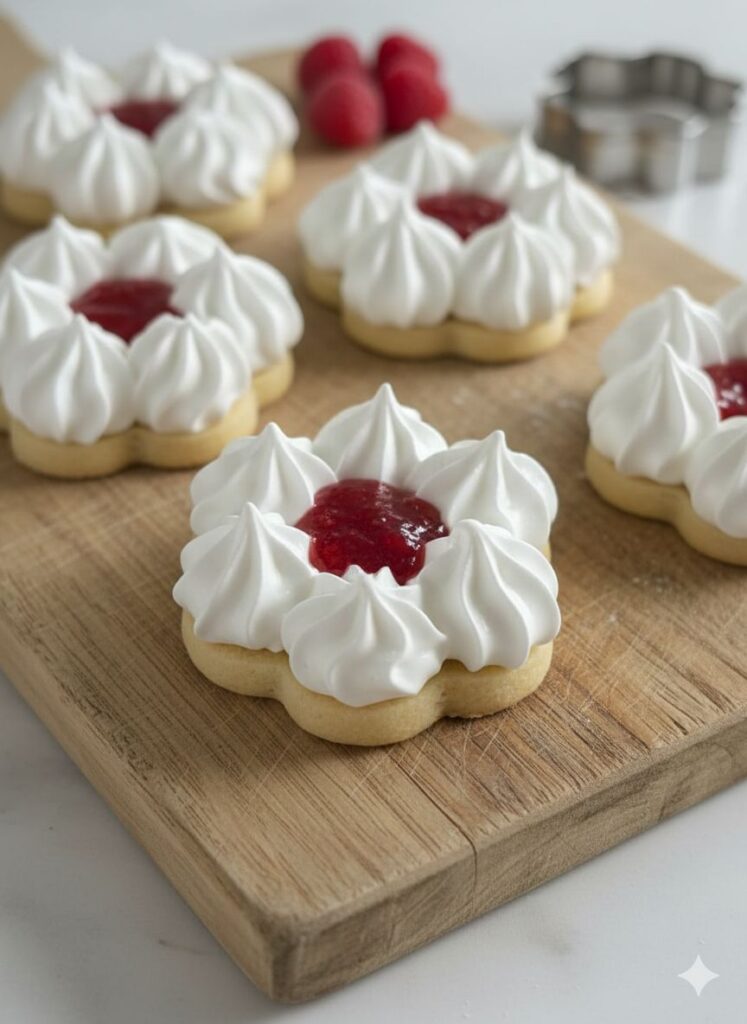 Der Mürbeteig ist butterzart, die Baiser-Spitzen glänzend und leicht knusprig – eine Kombination, die süße Momente garantiert. Besonders hilfreich ist der Einsatz von Zitronensäure, die das Baiser stabilisiert und das Backen erleichtert.
