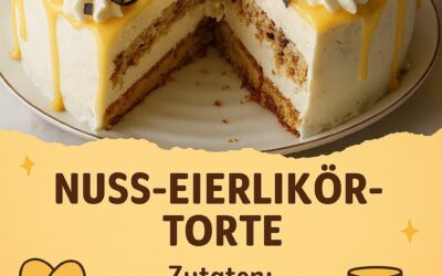 NUSS-EIERLIKÖR-TORTE Zutaten (für eine Springform Ø 26 cm) Für den Biskuit: 4 Eier 120 g Zucker 100 g Mehl 100…