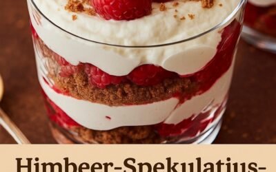 Himbeer-Spekulatius-Dessert Spekulatius–Himbeer-Dessert im Glas Zutaten für 4 Gläser Für das Dessert 200 g Spekulatius 300 g gefrorene Himbeeren 150 g…