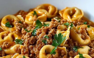 Cremige Tortellini-Pfanne mit würzigem Hackfleisch Zutaten:500 g Tortellini (mit Käsefüllung), 300 g Hackfleisch (Rind oder Schwein), 1 Zwiebel, fein gehackt,…