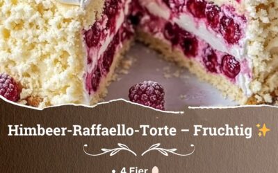 Himbeer-Raffaello-Torte Zutaten: 4 Eier 100 g Zucker 1 Prise Salz 100 g Mehl 40 g Speisestärke 1 Teelöffel Backpulver 400…