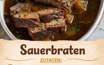 Sauerbraten wie bei Oma, pure Wohlfühlküche Zutaten Für die Marinade 240 ml Rotweinessig oder Apfelessig 740 ml Wasser 1 große…