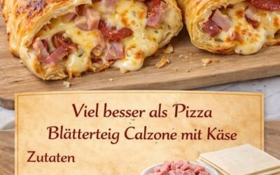 Blätterteig Calzone mit 100 g Salami & 150 g Käse Zutaten: 120 g Kochschinken 8 Scheibe/n Blätterteig (TK), 2 Scheiben…