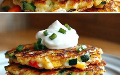 Hüttenkäse- und bunte Gemüsepfannkuchen Zutaten: 200 g Hüttenkäse (normal oder leicht) 2 Eier 4 Esslöffel Mehl 1/2 Teelöffel Backpulver 1/2 rote…
