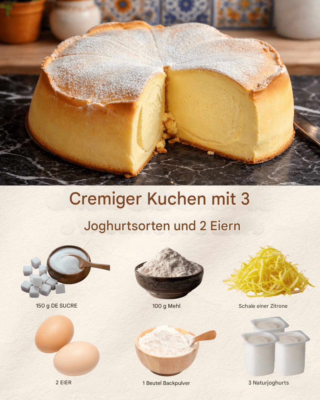 Cremiger Kuchen mit 3 Joghurtsorten und 2 Eiern