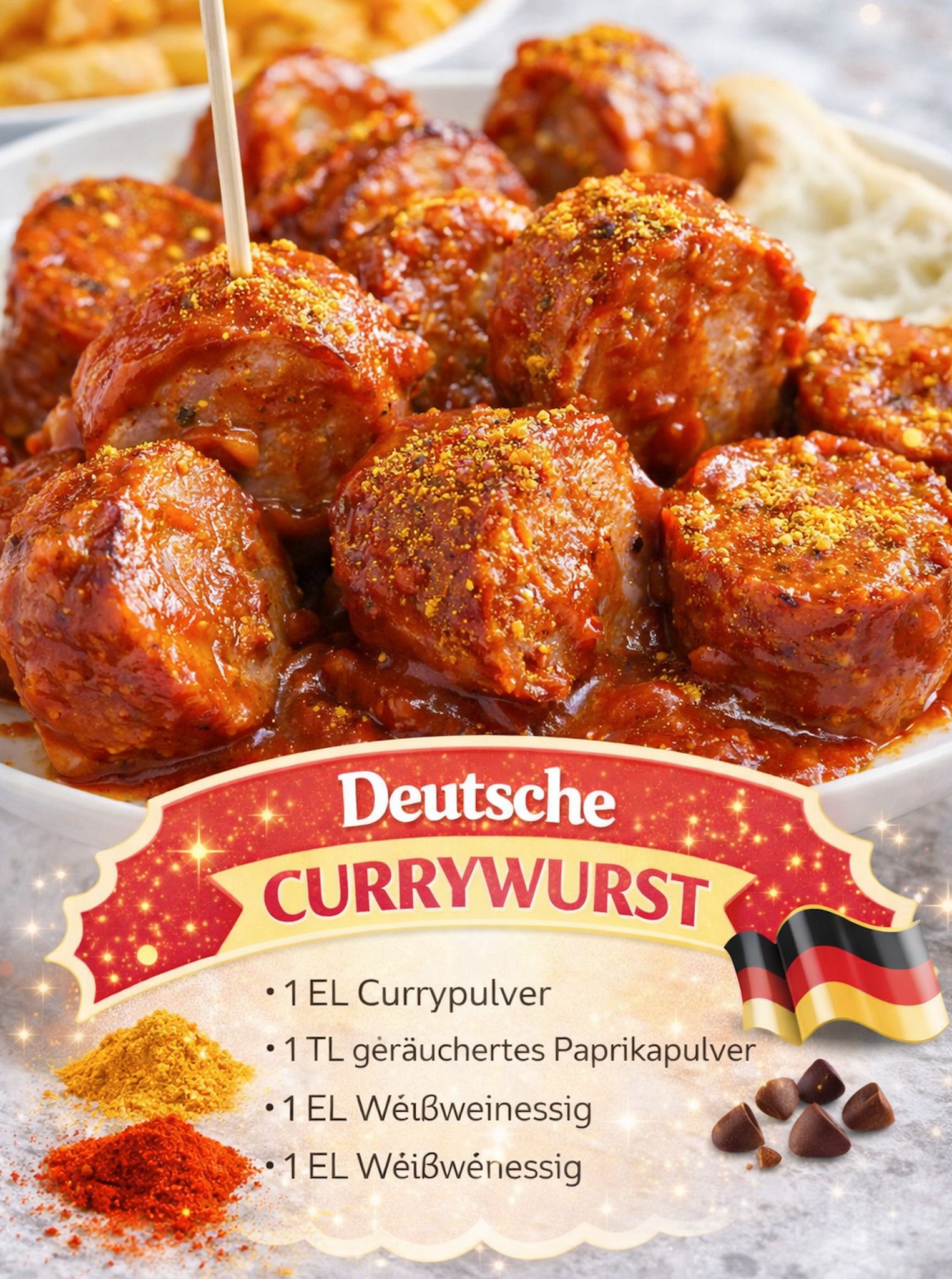 deutsche Currywurst ist pure Imbiss-Liebe saucig und macht sofort glücklich