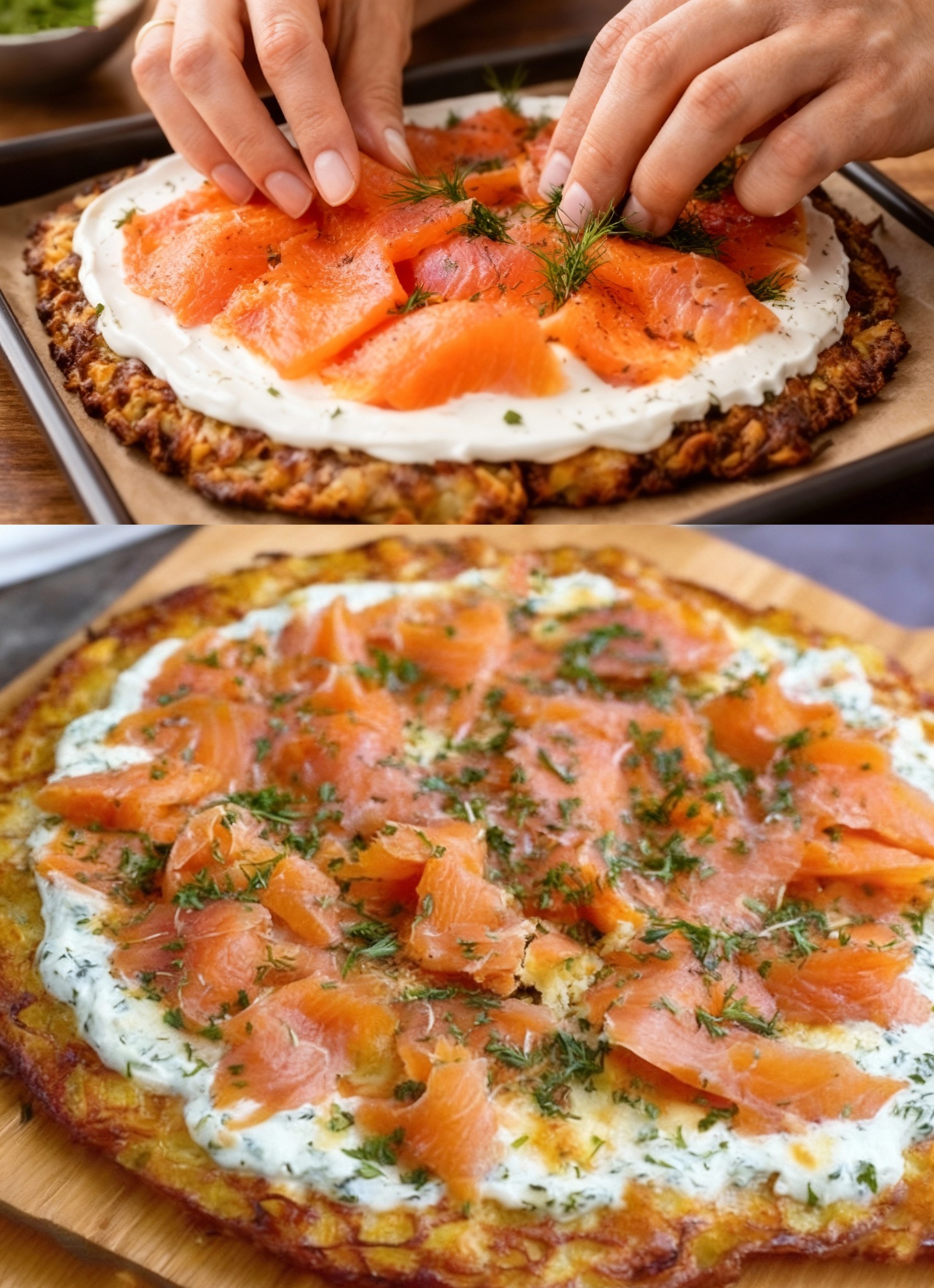 Ein Blech reicht nie egal wie viele wir sind, Kartoffel–Lachs-Pizza