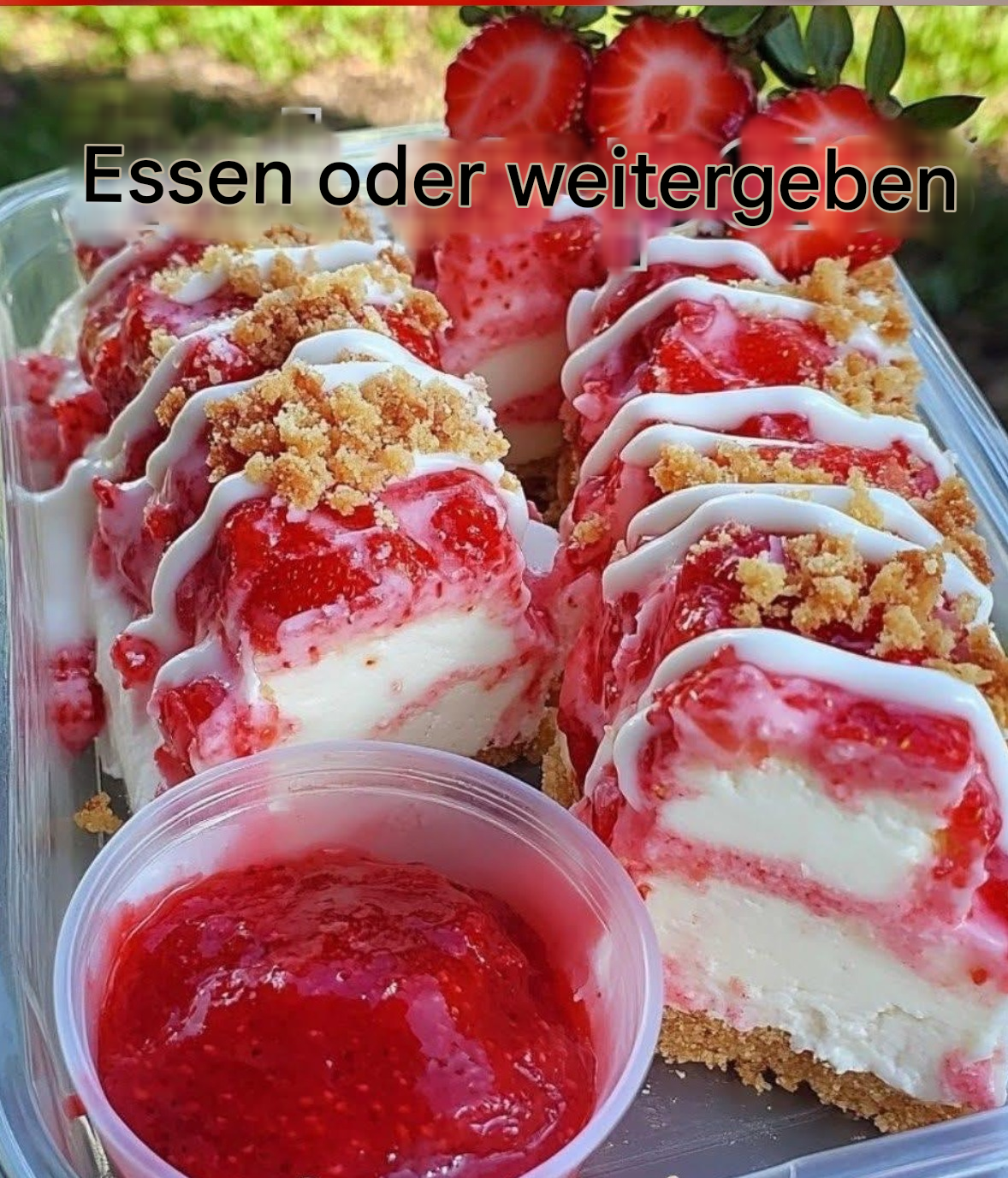 Erdbeer-Crunch-Käsekuchenstücke