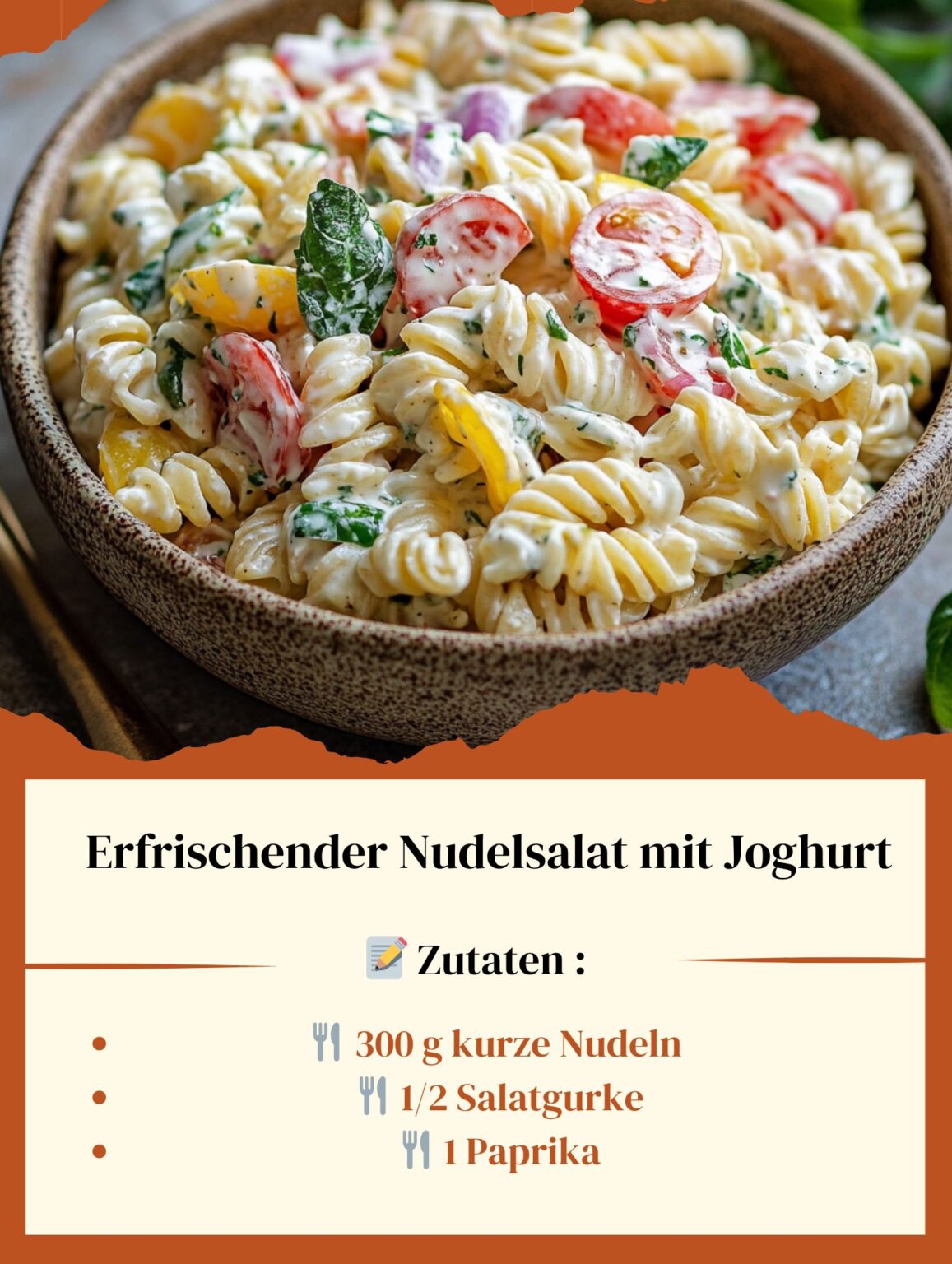 Erfrischender Nudelsalat mit Joghurt – leicht, cremig & perfekt für warme Tage!