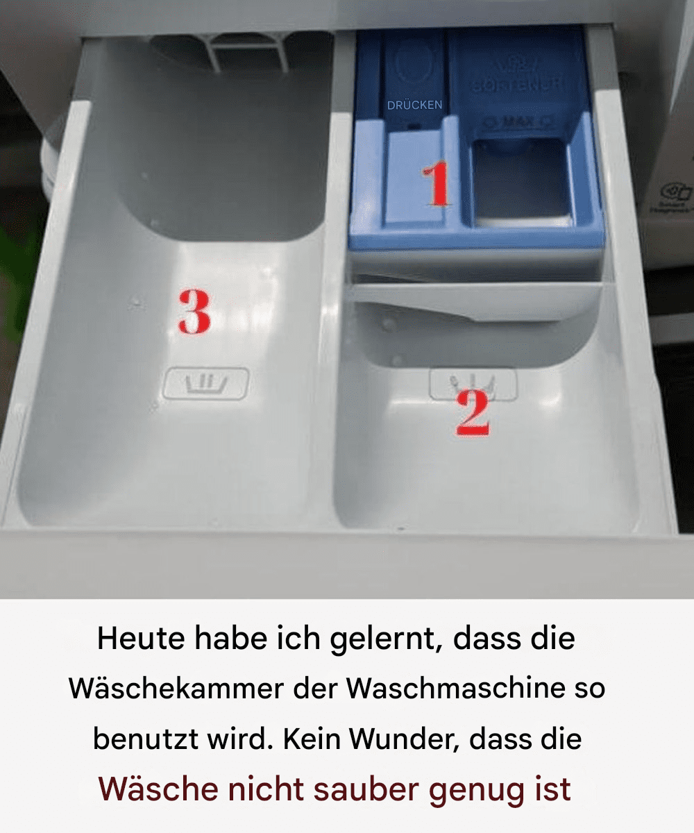 Heute habe ich gelernt, wie man das Waschmittelfach der Waschmaschine richtig benutzt – kein Wunder, dass meine Wäsche nicht sauber wurde.