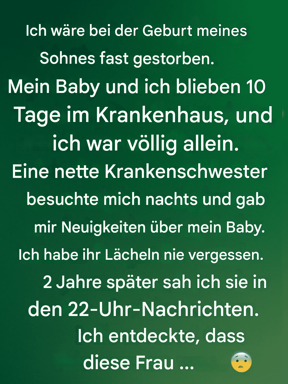 In der Nacht, als mein Sohn geboren wurde, war ich dem Tod näher als je zuvor, obwohl ich es damals noch nicht ganz verstand. Die Wehen hatten mit den üblichen Beschwerden begonnen, auf die sich jede werdende Mutter vorbereiten soll, doch sie entwickelten sich schnell zu etwas viel Furchteinflößenderem. Stunden verschwammen in Wellen von Schmerz, Erschöpfung und Angst. Mein Körper fühlte sich an, als würde er sich selbst zerreißen, und jeder Atemzug wurde zur Qual. Als Komplikationen auftraten, eilten Ärzte mit dringlichen Stimmen und ernsten Gesichtern ins Zimmer und wieder hinaus. Ich erinnere mich, wie ich mich an den Bettgittern festklammerte, still betete und meinen Körper anflehte, noch ein wenig durchzuhalten. Als mein Sohn endlich da war, war ich kaum bei Bewusstsein, irgendwo zwischen Erleichterung und Entsetzen. Anstatt von Freude überwältigt zu werden, wurde ich in den Aufwachraum gebracht, schwach, desorientiert und unsicher, ob ich die Nacht überhaupt überleben würde. Zehn lange Tage lang lag ich danach in einem Krankenhausbett, umgeben von Maschinen, Medikamenten und sterilen weißen Wänden. Meine Familie wohnte Stunden entfernt und konnte mich nicht oft besuchen. Mein Mann war beruflich im Ausland und konnte nicht sofort zurückkehren. Ich war körperlich und seelisch völlig erschöpft und fühlte mich so allein wie nie zuvor. Die Stille in diesem Zimmer war lauter als jeder Lärm und umfing mich wie eine zweite Krankheit.