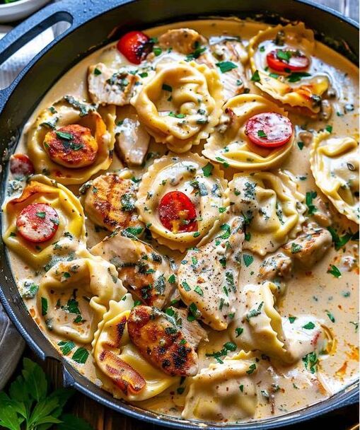 Superleckeres Tortellini in Hähnchen Schmandsauce in 10 Minuten