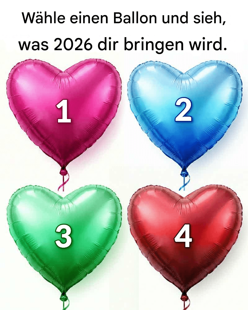 Auf den ersten Blick wirkt das Bild schlicht und fröhlich: vier herzförmige Ballons in verschiedenen Farben, jeder mit einer Zahl von eins bis vier gekennzeichnet. Darüber prangt die markante Einladung: „Wähle einen Ballon und finde heraus, was 2026 dir bringt.“ Es wirkt unbeschwert, fast wie ein Spiel – doch hinter dieser Einfachheit verbirgt sich eine tiefere Botschaft darüber, wie Menschen über die Zukunft denken.