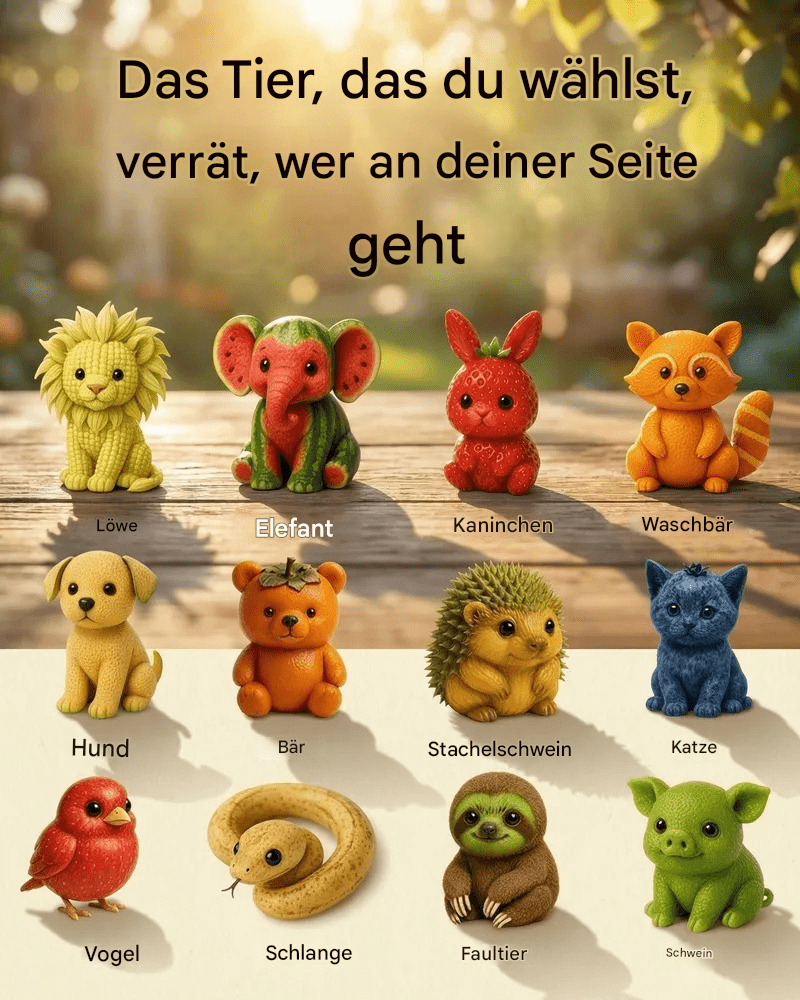 Das Poster hing wie eine kleine, vergessene Einladung im stillen Wartezimmer. „Das Tier, das du wählst, verrät, wer an deiner Seite geht“, stand darauf, umgeben von sanften, spielzeughaften Tieren – Löwen, Kaninchen, Hunden, Vögeln und anderen –, die alle mit großen, geduldigen Augen nach vorn blickten. Die Leute gingen achtlos daran vorbei, doch Daniel, der mit verschränkten Händen da saß und dessen Leben sich ungewöhnlich schwer anfühlte, blieb von dem Bild berührt. Es waren nicht die Farben oder das verspielte Design. Es war die Vorstellung, dass vielleicht, selbst wenn man sich allein fühlt, etwas – oder jemand – die ganze Zeit still an der Seite war.